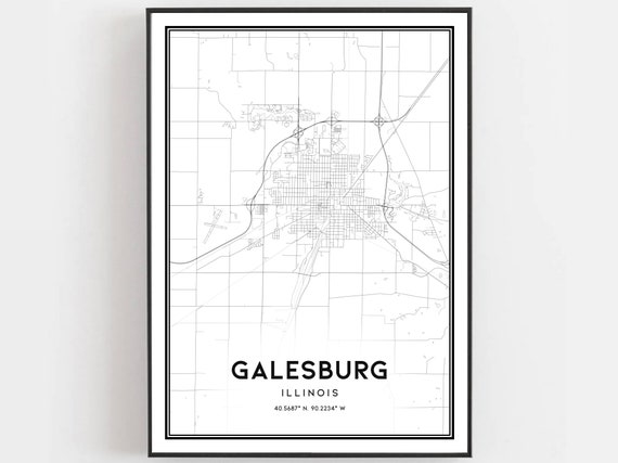 Galesburg Map Print, Galesburg Map Poster Wall Art, Il City Map
