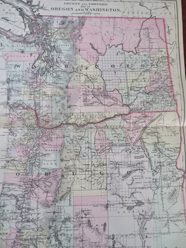 1882 Watson Map Washington Oregon Idaho Montana Seattle